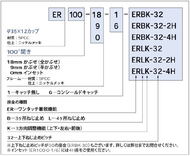 スライドヒンジ ER100 シリーズ 35φ ワンタッチ着脱式