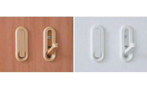 ・凸部が少ないスタイリッシュなデザイン・ワンタッチで開け閉めが可能・ビス止めでしっかり固定・ブラウン・ライトブラウン・ホワイトの3色展開・バネ仕様なので軽く押すとフックが出てくる・収納する方向にはバネは効きません